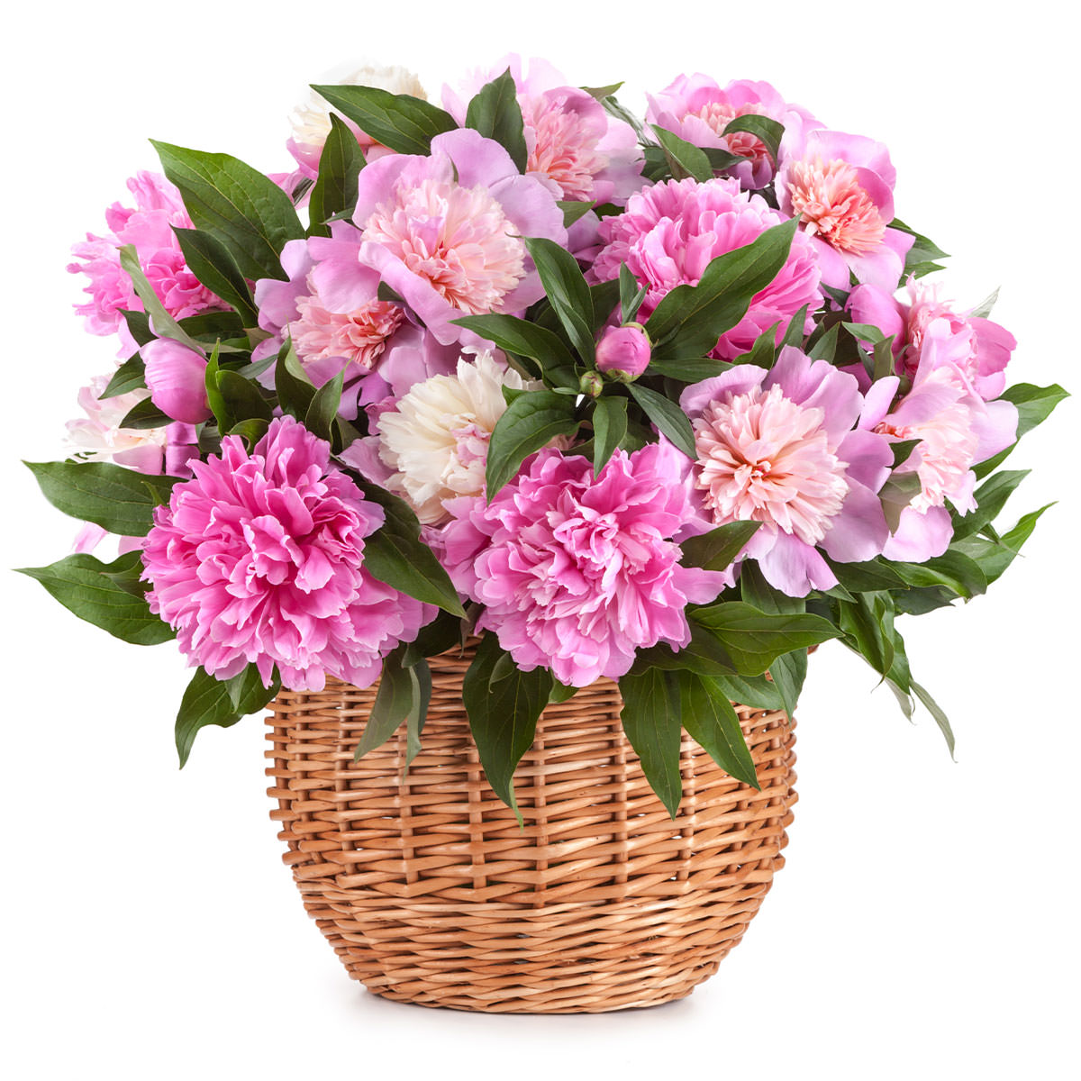 Корзинка пионов «Сладкий сон» с гарантией качества, цены и быстрой доставки!
